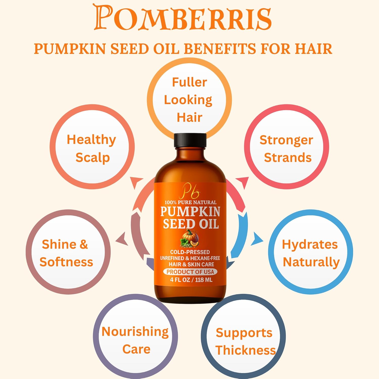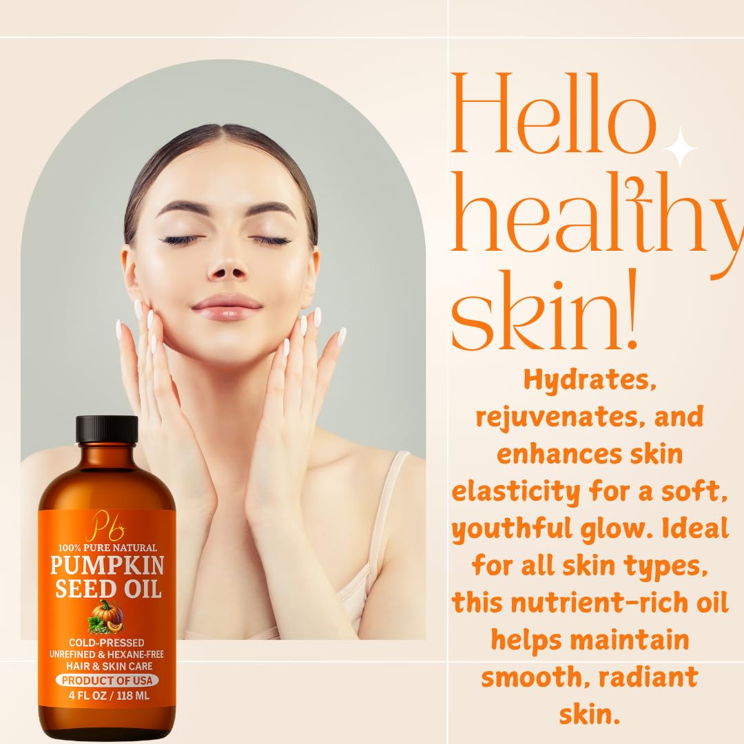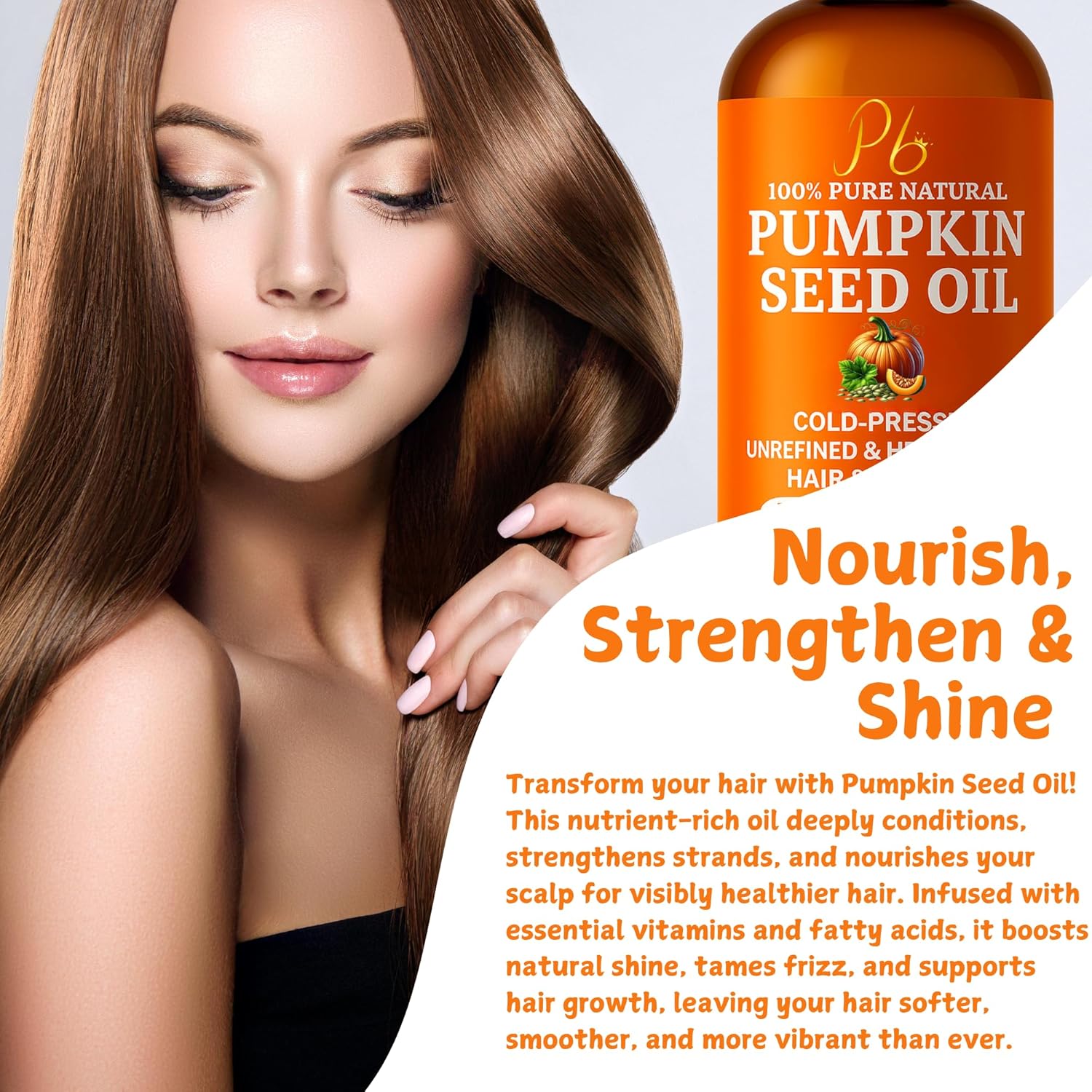Pumpkin Seed Oil – Cold-Pressed & 100% Pure, Unrefined, Pumpkin Oil for Hair Growth, Dry Skin & Face – Natural Anti-Aging Moisturizer & Hair Oil for Dry, Damaged Hair – Glass Bottle, 4 fl oz