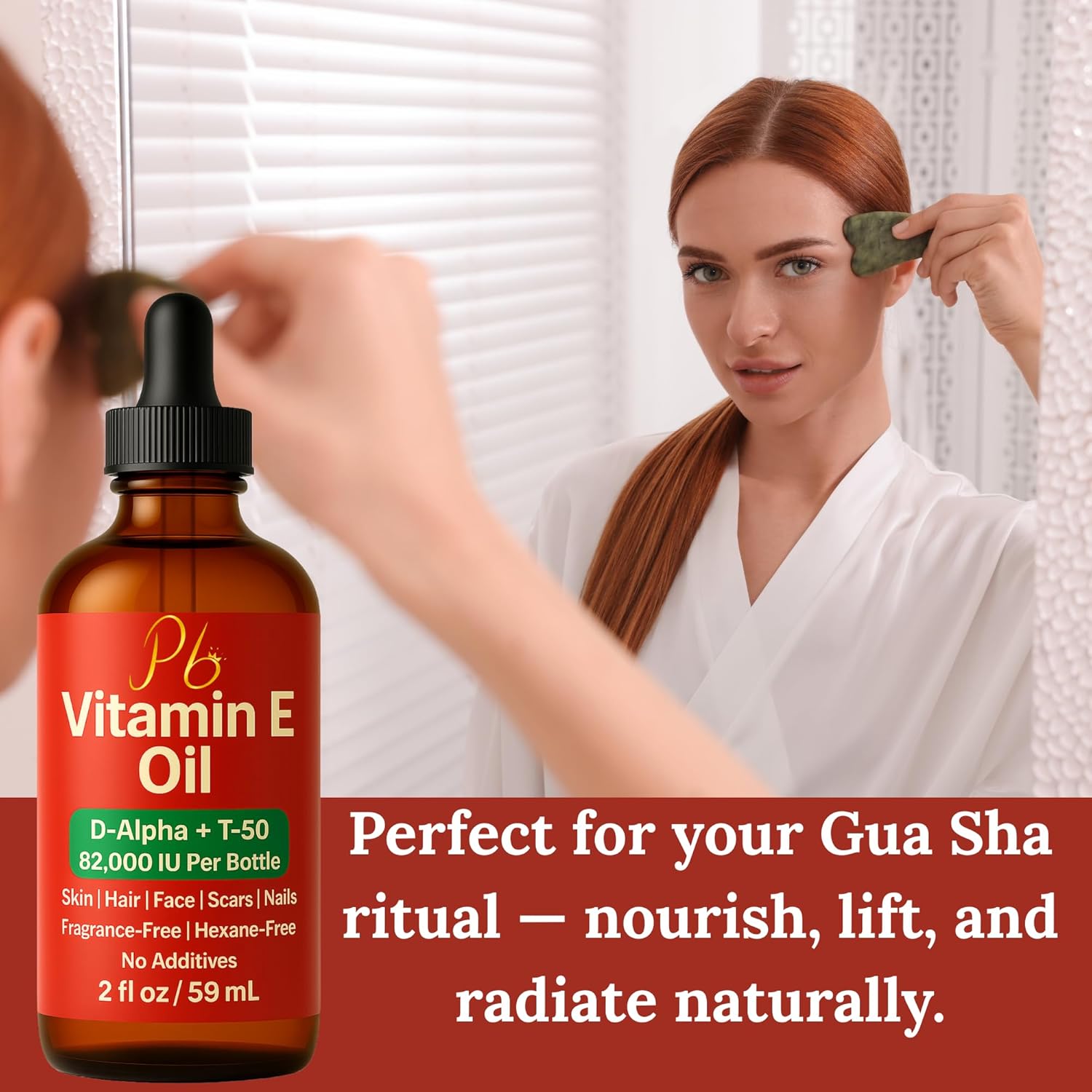 Vitamin E Oil – 82,000 IU | Broad-Spectrum Tocopherols (D-Alpha, Gamma, Beta, Delta) | Scar, Stretch Mark & Dry Skin Care | Face, Hair, Body & Massage – 2 fl oz Glass Bottle, Made in USA